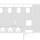 - dávkovač mydla, sušič rúk/zásobník na utierky na ruky, zásobníky na toaletný papier, zrkadlo, elektrická zásuvka